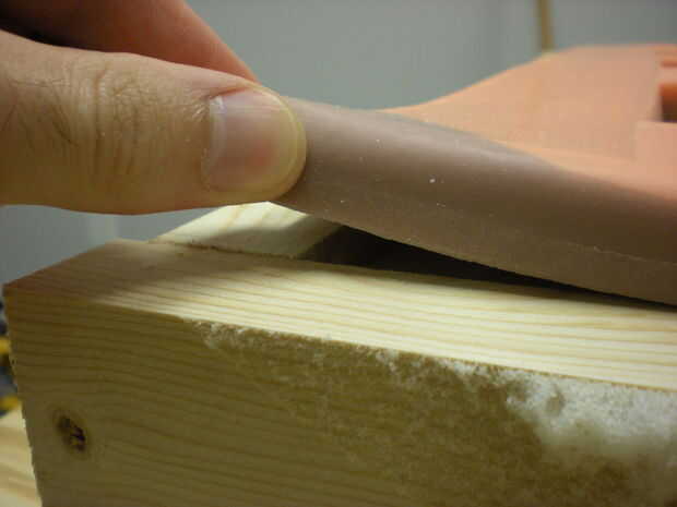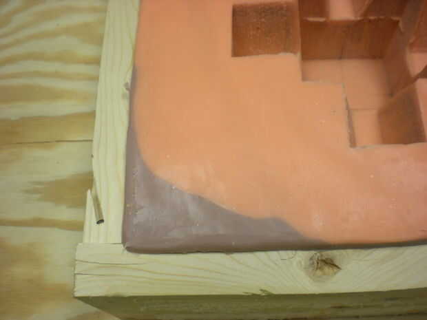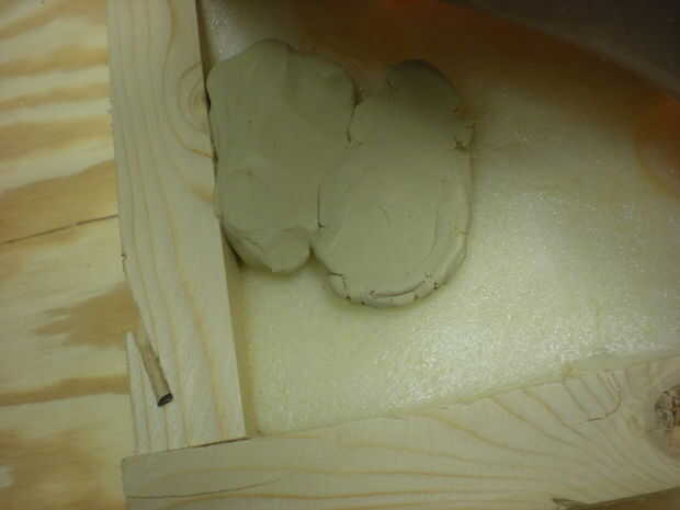 Compruebe la firmeza del molde alrededor del borde del marco. Si hay cualquier huecos, necesitan ser rellena con plastilina.