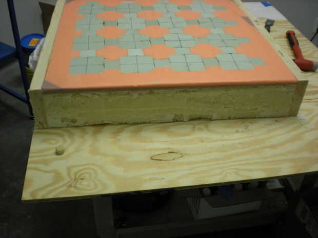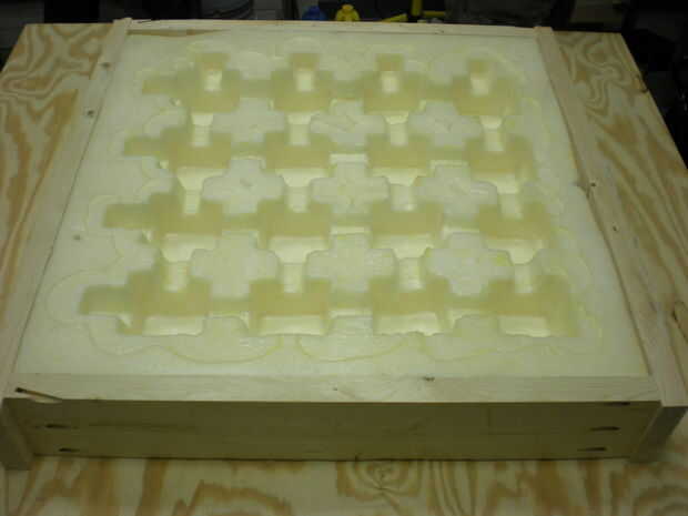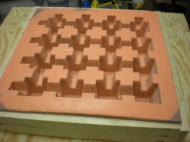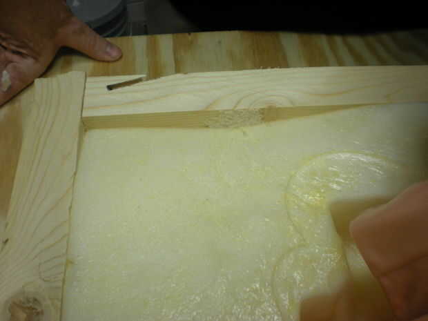 Una vez que han limpiado el molde bien, fijado apagado a un lado que algunos lugar seguros. Cambiar el tamaño de la estructura de madera, corte, hasta que la altura de la estructura es igual a la altura de la concha de la madre (espuma). El marco de madera tamaño debe presionar firmemente contra los lados de la concha de la madre. Probablemente necesitará cambiar el tamaño de las longitudes de los lados también. El molde debe ser capaz de mentir en la concha de la madre y tienen sus bordes cuelga en el marco de madera. Una vez hecho esto, vuelva a montar el marco alrededor de la concha de la madre. Poner el molde en la concha de la madre y asegúrese de que los lados del molde son compatibles con el marco.