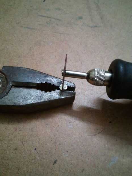 Sostenga el tornillo con los alicates e inicie la unidad de corte con el dremel en la cabeza.