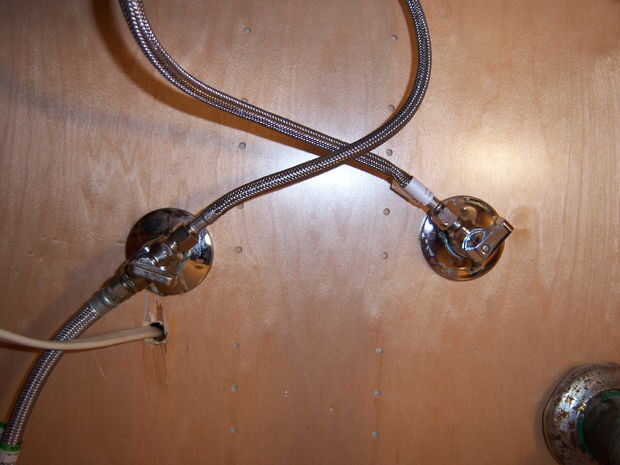 OK, ahora que ya tenemos ese poco de desagradable trata, tenemos que encontrar la llave de cierre para el grifo. Estos deben parecerse un poco la imagen tercera de abajo. Estos apague y verificar girando el grifo (prueba fría y caliente!). Una vez que están apagados, coloque el recipiente debajo de uno de ellos y desconecte la manguera que la válvula del grifo. Agítalo para que salga toda el agua y repita para el otro lado. Asegúrese de que usted seguimiento de que la manguera se conectó a que válvula. Si no ya están rotuladas, un poco de cinta adhesiva y un lápiz podría guardar cierta angustia por el camino.