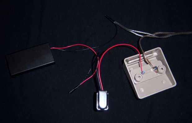 - Conecte el cable rojo de la batería de 9V a un post del interruptor de pie