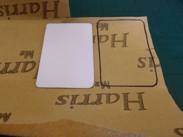 1. Saque la plantilla de cartón y dibujar alrededor de ella en la parte posterior del papel de lija.