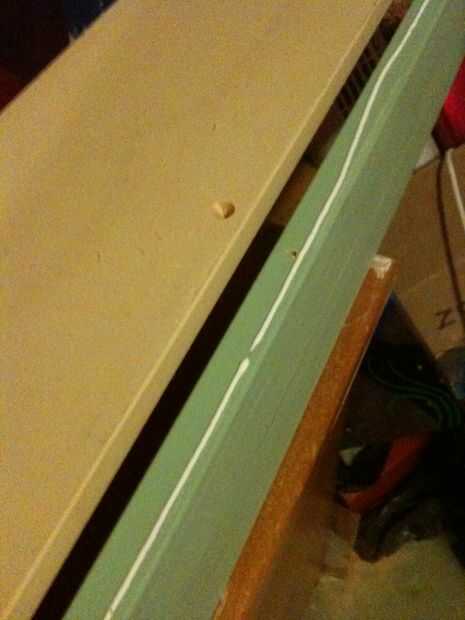 Llene los agujeros con masilla o relleno. También llené los extremos donde los cortes eran áspero y no precisas juntas. Después de dejar el relleno para unas horas la lija de nuevo y pintado.
