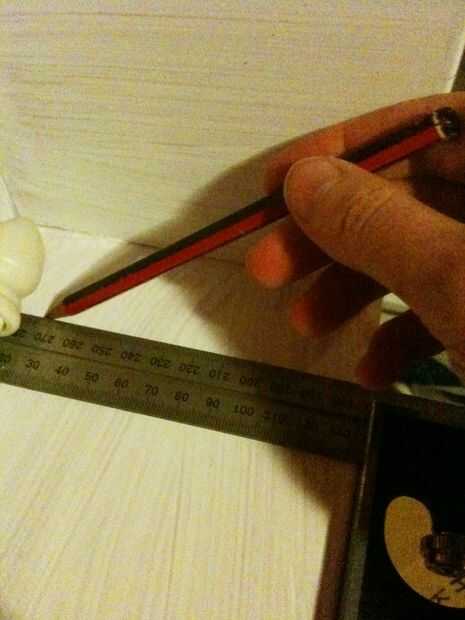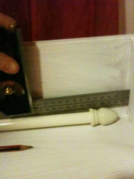 Medir 30 mm en los extremos y marcar una línea para colocar los ganchos. Para estos quería los ganchos cerca de cada lado dejando un suficientemente grande del boquete en el medio para poder maniobrar las barras fácilmente.