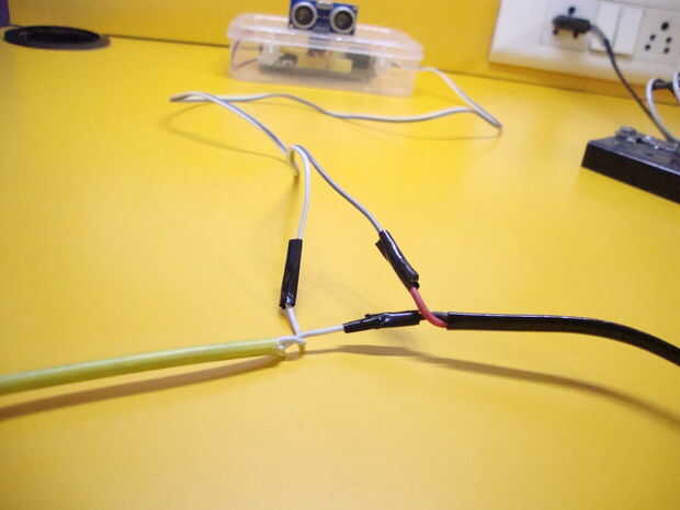 Primero tomar dos piezas largas de los cables y conéctelos a los terminales que sueldan antes. Los cables se salen de la caja. Ahora simplemente no se puede conectar estos cables a cualquier dispositivo. Tenga en cuenta algunas cosas antes de conectar algo.