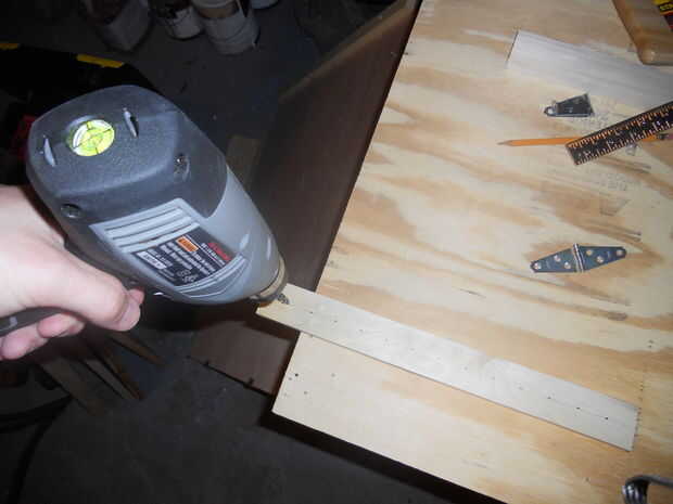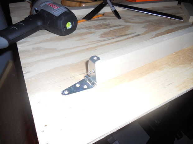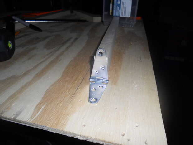 Con los agujeros perforados, este es un buen momento para perforar los agujeros de la bisagra en el extremo del brazo. Usé una solo 2" bisagra, que fue un poco más de la Junta, por lo que sólo martilló el extremo para doblarla sobre el brazo. No até la bisagra pero porque estaba preocupada conseguiría de la manera como yo fui conectar las clavijas.