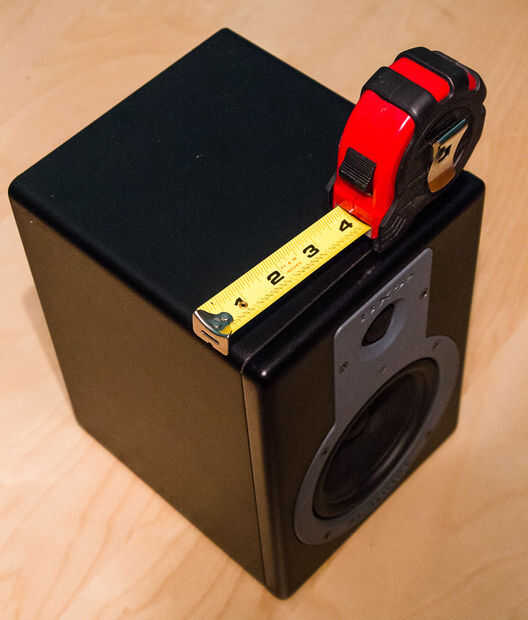2. Mida la longitud de la XLR o 1/4" TS conector que sale de la parte posterior del altavoz para acomodar para separación de espacio si es necesario.
