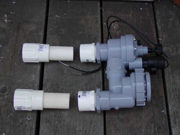 Utilizando cemento para tubería PVC (claro o «caliente azul»), las secciones cortas de tubería de cemento en las guarniciones de x FPT deslizamiento según las instrucciones en la lata, asegurándose de que las tuberías estén completamente insertadas. Mientras que el cemento esté aún húmedo, gire el tubo en el accesorio al menos una media vuelta para asegurarse de que hay no hay huecos en la capa de cemento, por lo que la conexión no se escaparán más adelante.