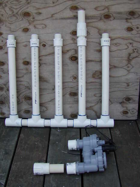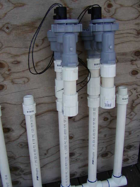 La segunda foto muestra cómo dos válvulas serán montado lado a lado en el colector de la canalización vertical. Los adaptadores son montados en seco solamente, no pegados.