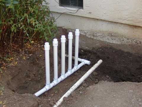 La tercera foto muestra el colector conectado a la tubería de suministro y colocado en el agujero donde se instalará la agrupación de válvulas.