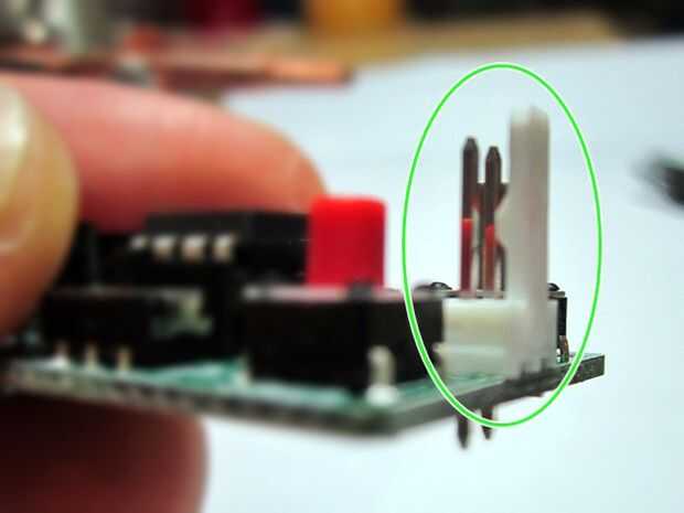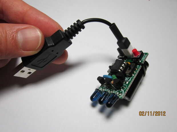 Lo primero que hice fue poner un encabezado macho guía (pieza de plástico en un lado) para asegurar la correcta polaridad de conexión. Pero éste era demasiado alto comparado con los otros componentes. Así que corte la guía de plástico y alfileres un poco. Usando un pequeño pedazo de doble cara toque con espuma en la parte inferior de la PCB y soldadas en serie Junta dos supercaps (2.5V, 10F). A fin de garantizar los supercaps en lugar seguro, se utilizó un lazo de cable delgado. Corté uno de los cable USB encontrado de mi caja de chatarra y al conector hembra de la rojo (+) y negro (-) los cables del cable USB.