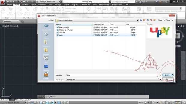 AutoCAD ahora le preguntará qué archivos que desee anexar. Seleccione la imagen que guardaste anteriormente y haga clic en " abrir ".