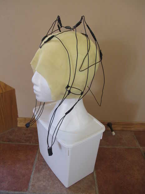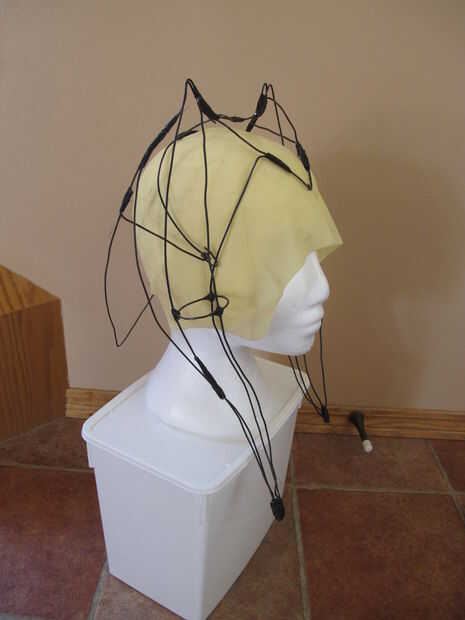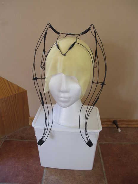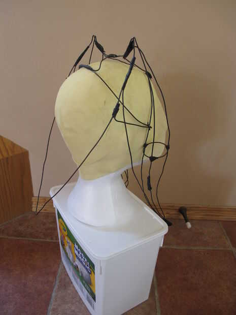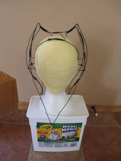 Una vez hecho hacer el bastidor y antes de continuar, poner el esqueleto de alambre en la cabeza del portador previsto para asegurarse de que se ve y se sienta justo. Asegúrese de que la parte posterior sobresale de la cabeza para que el usuario sea capaz de inclinar su cabeza hacia atrás.