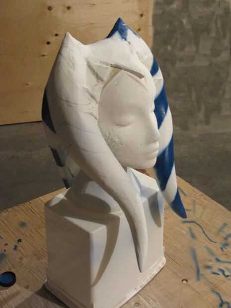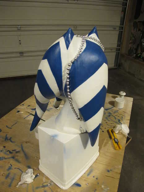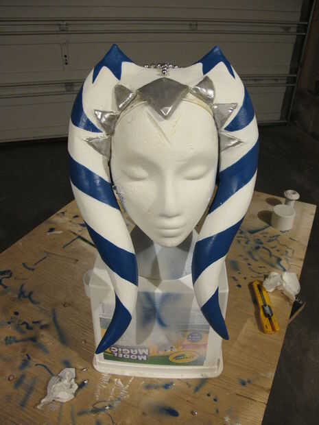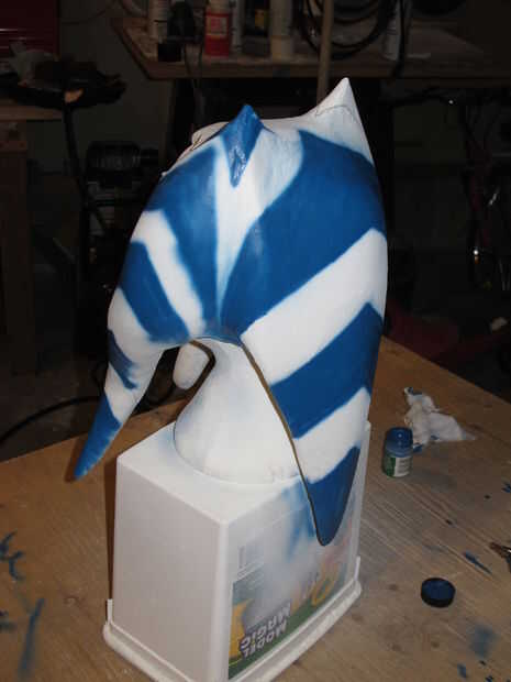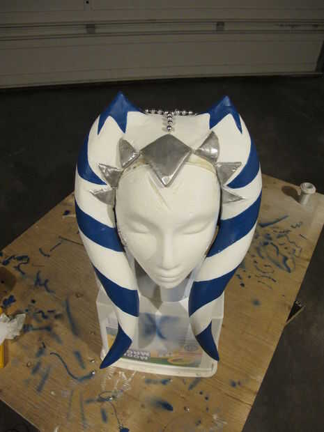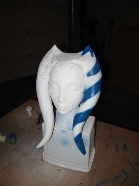Una vez seco, utilicé un lápiz y dibujó hacia fuera donde iría el stipes. Para encontrar un buen patrón busqué en Google "Ahsoka Tano" y vieron todas las fotos de su 'pelo' en diferentes ángulos.