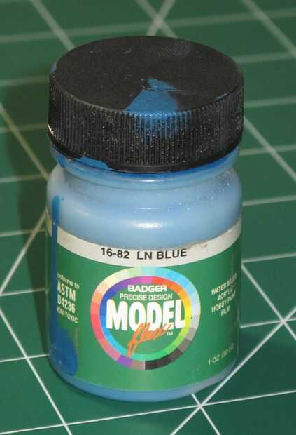 Usé pintura de modelo de tejón, 16-82 LN azul, para las bandas. Originalmente me aerografiado la cabeza, pero no estaba contento con los bordes borrosos. Terminé usando un pincel fino para hacer los bordes afilados. Así usted podría sólo utilice un cepillo para el azul si te gusta.