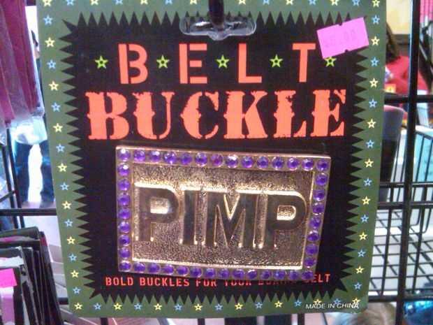 Para la hebilla encontré un barato ' PIMP "hebilla en la tienda de halloween por $3. Elegí esta hebilla era lo suficientemente grande para lo que quería hacer. La clave para cualquier hebilla es su tamaño. Que desea ser tan grande o un poco más grande que el cinturón que usted elija.