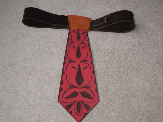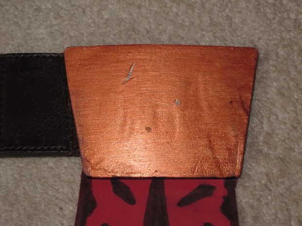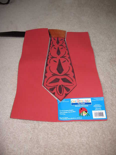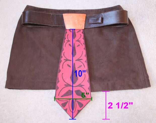 El personaje lleva un lazo en su cinturón. He hecho de espuma de la diversión que recibí de una tienda de artesanía para un par de dólares. Desea el lazo para colgar justo debajo de la falda cuando se hace. En mi caso corté para ser 10 pulgadas de largo desde el fondo de la hebilla. Tenía la corbata caída a 2 1/2 pulgadas por debajo de la falda y en el punto más ancho, que hice 5 pulgadas de ancho.