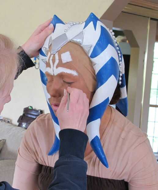 Con el casco te puede terminar aplicando el resto del maquillaje. He utilizado las imágenes del personaje que encontré en línea como el patrón de trabajo de.