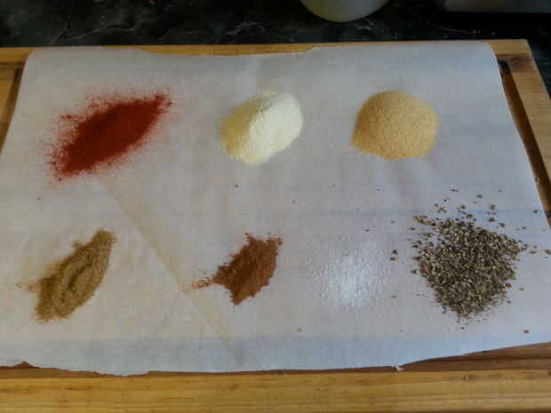 Se trata de una variante de mis especias Classic. Usted puede usar con pollo, ternera o cerdo! Combinar en un bol, en las proporciones de ver en la imagen. Ajuste el volumen al tamaño y número de aves que está cocinando. Frote la parte superior del ave con mitad el rub y un cuarto dentro de las aves. Utilice el último de la frotación y lo cayó a frotarla en la parte posterior. Deje reposar a temperatura ambiente mientras prepara la cerveza!