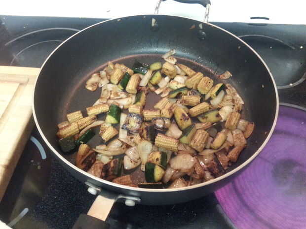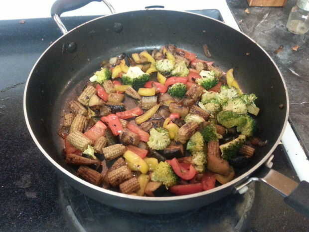 Si usted necesita limpiar usted vegetariano verduras prisa esto funcionará con casi cualquier cosa. Hemos hecho diferentes giros nacionales casi una decena en esto. Si tienes un wok bien este es un momento bonito para dejarlo brillar! Para mejores resultados, precaliente el sartén sobre med-high, luego agregue aceite temperatura justo antes de verter en el recipiente del primer. Esto hará que un buen silbido cuando las tierras de la verdura y un buen fiador! La parte más importante es tomar nota todos tienen diferentes tiempos de cocción. Generalmente se dividen mina en tres tazones de fuente. Primero tiene la verdura más densa como el calabacín, cebolla y elote. Añadir sal y pimienta. Me gusta obtener un color agradable en estas, debe tomar 5-8 minutos. En segundo lugar los pimientos verduras más suaves pero aún crocantes, maíz tostado o Snap Peas iría aquí. Desea algún color de estos, pero todavía tiene algunos mordedura (dente) cocinar para un adicional 5 minutos por último el brócoli más delicado, hierbas frescas o castañas de agua. Darle un buen revuelo y echar un chorrito de caldo o agua, cubrir con una tapa o galletas. Apague el quemador pero dejan el pan fueron es. Basta con calentar éstos para arriba, 2-3 min, el vapor va acabar. Le dan un bonito revolver y cocinar un poco más si es necesario.