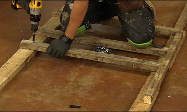 Tomar una de cada (parte 4-la pared marco de frente, 6') y (parte 5 - marco de la pared, 5' 6") de los fondos y garantizar 4 pedazos de (parte 7-estante soporte, 33") en 24", 36" 44 "y 52" al asegurar piezas 7 parte 5, deje un 1 ½" espacio para la parte 6. A repetir los mismos pasos para el segundo lado, dejándote con el marco para el lado derecho e izquierdo de su ahumador.