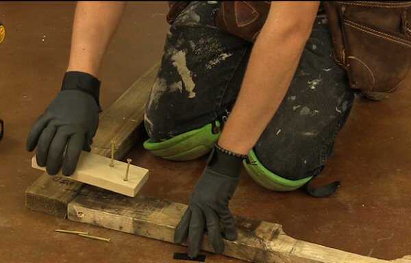 Usa un jig casero para obtener nuestros tornillos en un ángulo en el marco.