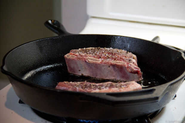 Coloque las costillas cortas dos o tres a la vez en la sartén. Asegúrese de que está dejando un montón de espacio entre las costillas cortas, incluso si eso significa que usted tiene que cocinar en varias tandas. Si usted les multitud en el pan, a vapor les en vez de marchitáis.