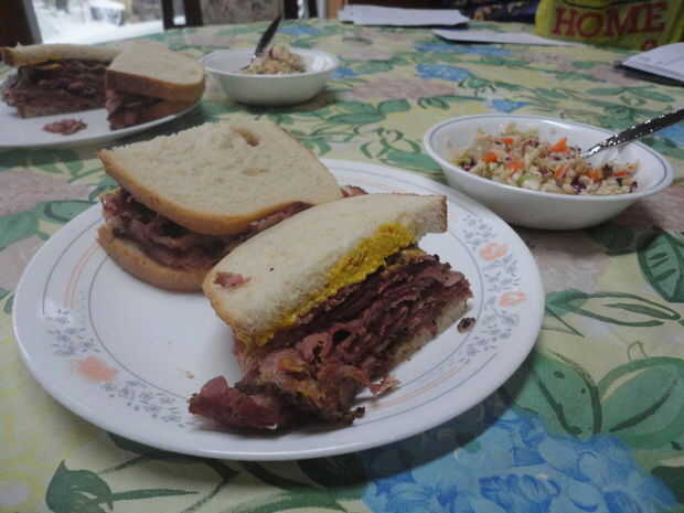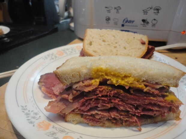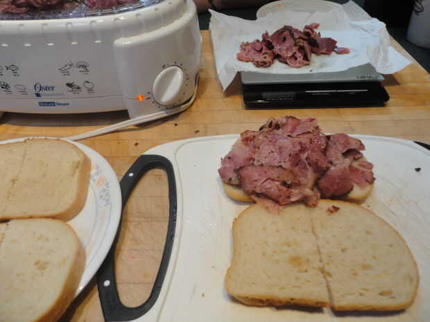 . Ponlo en centeno con mostaza y eneldo encurtido en el lado. Nosotros preferimos cortar toda la carne a la vez y 12 onzas de carne en bolsas individuales y congelarlas hasta que estamos listos para un sándwich. Sí, esto parece mucho trabajo, pero el producto final, es tan bueno. Al igual que un verdadero deli... Este pecho producirá sobre 6-7 sandwiches. Teniendo en cuenta este pecho cuesta $8,99 que resulta ser de $1,35 / sandwich. Donde como un Deli cobrarían unos $8,00 por sólo uno. …… Disfrutar.