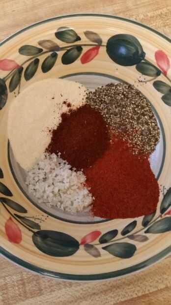 Aquí he cultivado mar sal de Irlanda (increíble y puede encontrarse en amazon), ajo en polvo, café molido pimienta, Chile en polvo oscuro y un pimentón.