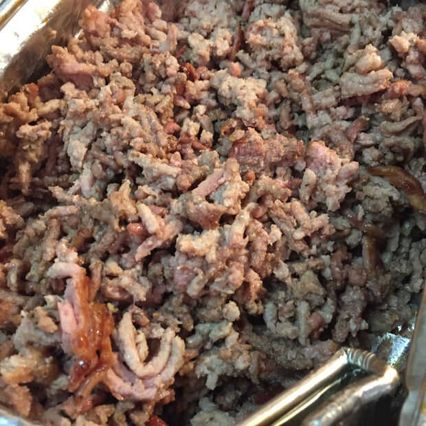 Paso 4 - agregar las 2 tazas de cerveza oscura entonces el 2-3 tazas de revolver stock vacuno y luego agregar la carne molida ahumada y revuelva