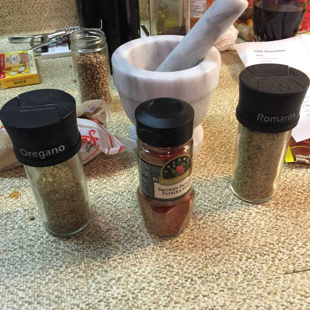 Paso 6 - ahora añadir 2 cucharadas de pimentón, 1 cda de comino molido, 1 cda cilantro, Romero 2 cucharadita secada, 2 cucharaditas de orégano, 2 cucharadas de azúcar morena, 2 cucharadas de miel y 2 cucharadas de Chile en polvo, 1 cucharadita de pimienta de Cayena