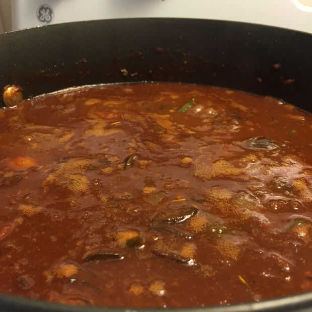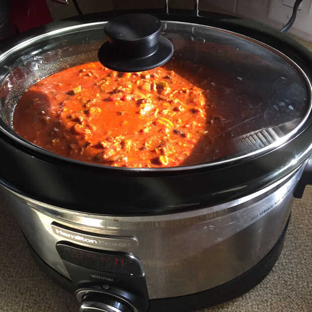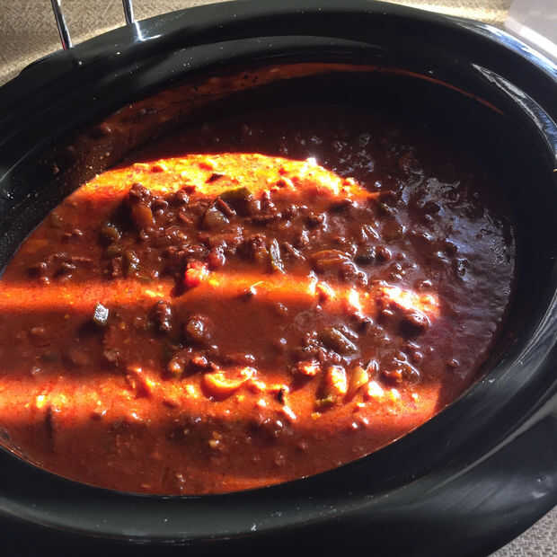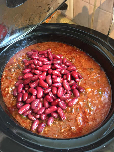 Porque estoy haciendo esto para un concurso que es al día siguiente no agregaré mis frijoles y perejil todavía porque no tienen demasiado tiempo para cocinar. Voy a añadir la siguiente mañana y lugar el Chile en un crockpot caliente. Ello alrededor 10:00 para una fiesta de Chile en 19:30 dará mi Chile más entonces suficiente tiempo para calentar y cocinar los frijoles.