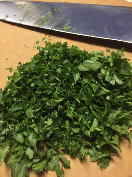 Para conseguir el Chile listo para servir agregue los frijoles colados y 1 taza de perejil fresco picado 20 minutos antes de su cocción hecho. Servir y decorar con queso y crema agria, si lo desea.