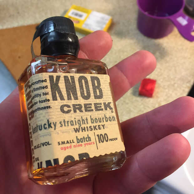 Paso 2 - como una película se convierte en la olla agregar los 2 tragos de bourbon a esmalte de la olla