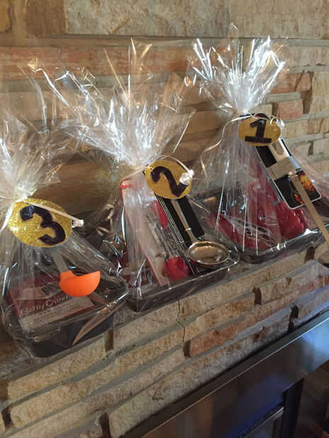 Hicimos 3 premios que fueron todos igual pero poco a poco consiguió más pequeño del 1er lugar al tercer lugar. Les envuelto y puesto en exhibición para que todos puedan ver durante el evento.