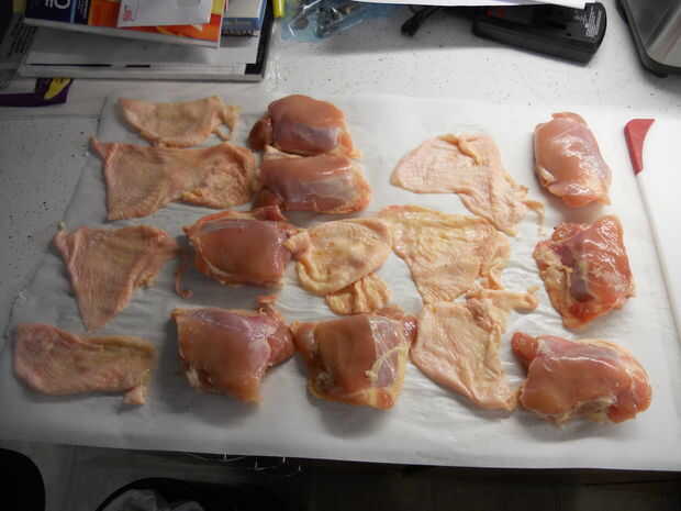Deshuesado y revestir sus propios muslos de pollo son una técnica de cocina esencial. El enfoque que estoy demostrando que minimiza la cantidad de carne desperdiciada. No sólo esto le puede ahorrar dinero, pero también puede usar los huesos para hace
