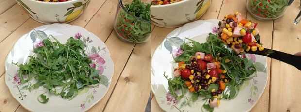 Ahumado de pavo, frijol negro, pimiento y ensalada de maíz (16 / 17 paso)