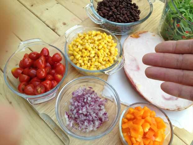 Ahumado de pavo, frijol negro, pimiento y ensalada de maíz (2 / 17 paso)