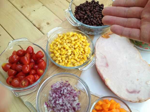 Ahumado de pavo, frijol negro, pimiento y ensalada de maíz (3 / 17 paso)