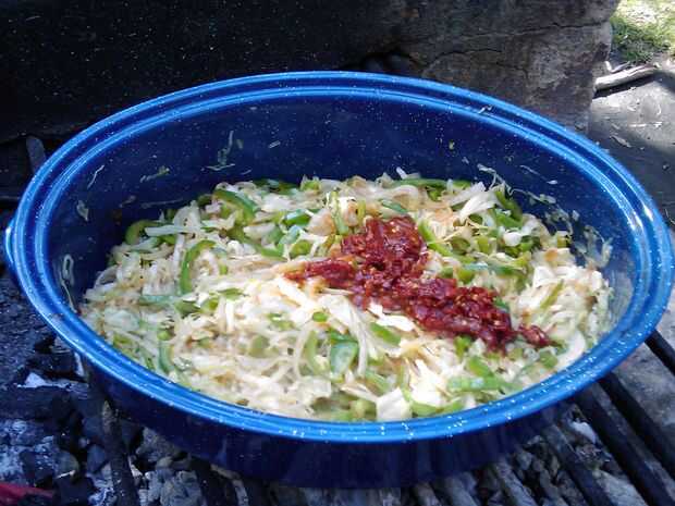 En este punto su bote será fragante y empezar a atraer a las personas deseosas de aprender, así que hincharán en su magnificencia y agregar la salsa de adobo de la lata de chiles chipotles de manera extravagante. Revolver y añadir el pimiento, finamente picado y revuelva otra vez