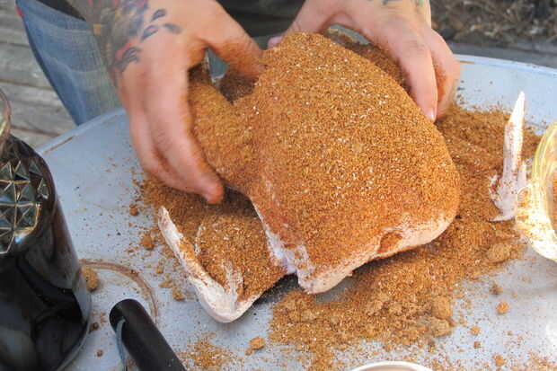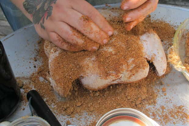 Se puede utilizar lo que desea para que los pollos frotarlos. Si usted está usando una salsa recomiendo saucing el pollo cada 15-20 minutos.