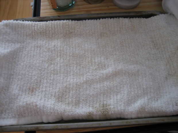 2. Cubrir con la segunda bandeja de la toalla y la hoja de