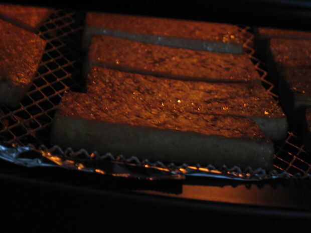 4. Coloque las rebanadas de tofu marinado en la rejilla una capa uniforme