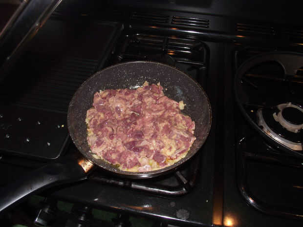 Aproximadamente chop los hígados de pollo añadir a la cacerola cubra y cocine por 5 minutos revolviendo de vez en cuando