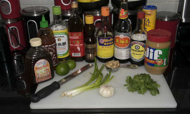 Ahumado tailandés costillas con glaseado de mantequilla de maní de Bourbon (1 / 6 paso)