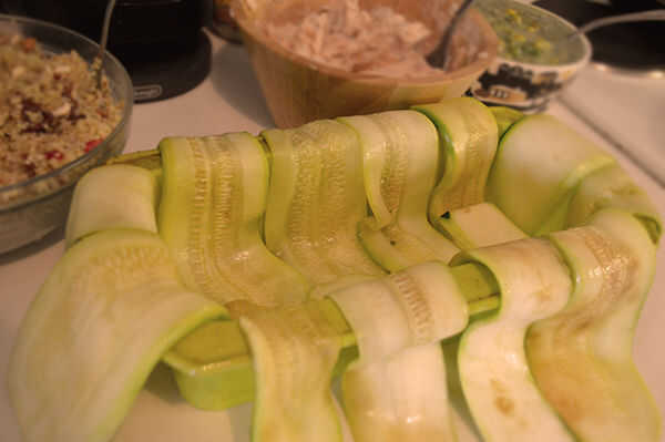 Coloque los calabacines como se muestra en la fotografía. El fondo tiene que ser completamente cubierto!