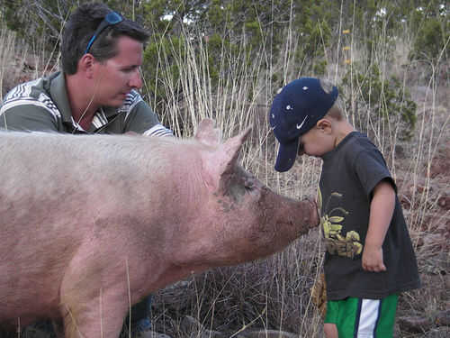 - Los cerdos son omnívoros, lo que significa que consumen una gran variedad de comida, incluyendo hierba, malas hierbas, verduras, granos, todo tipo de restos de cocina, cualquier sacrificio los desechos de otros animales (como aves de corral o conejos). Para crecer bien, necesitan un porcentaje bastante alto de proteína en su dieta. Así que si no les das algo como restos de carne o residuos de sacrificio, les dan una planta alta en proteínas como la soja. Para uno o dos cerdos de alimentador, usted puede complementar su alimento considerablemente las malezas para ellos y darles restos de. Esto traerá el costo de criarlos, y cerdos encantan la variedad.