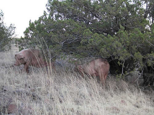 - Cerdos como ir de excursión, enraizamiento de alimentos mientras caminan. Darles tanto pasto como usted puede de repuesto (rotación de los pastos es una buena idea también). Los cerdos también pueden vivir como parte de una manada mixta. Nuestro pasto es abierto a cerdos, aves de corral y cabras. Si sus cerdos consigue un montón de ejercicio, su tono muscular será altamente desarrollado, haciendo una carne mejor.