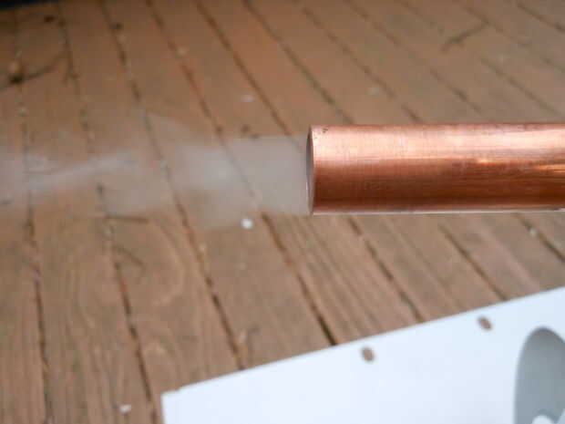 Inserte el extremo de la 6" longitud de tubería en tu caja o gabinete o parrilla o barril.