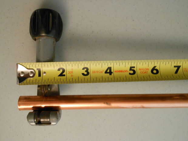 Establecer su cortador de tubos en la marca de la pluma de 1" en la tubería.